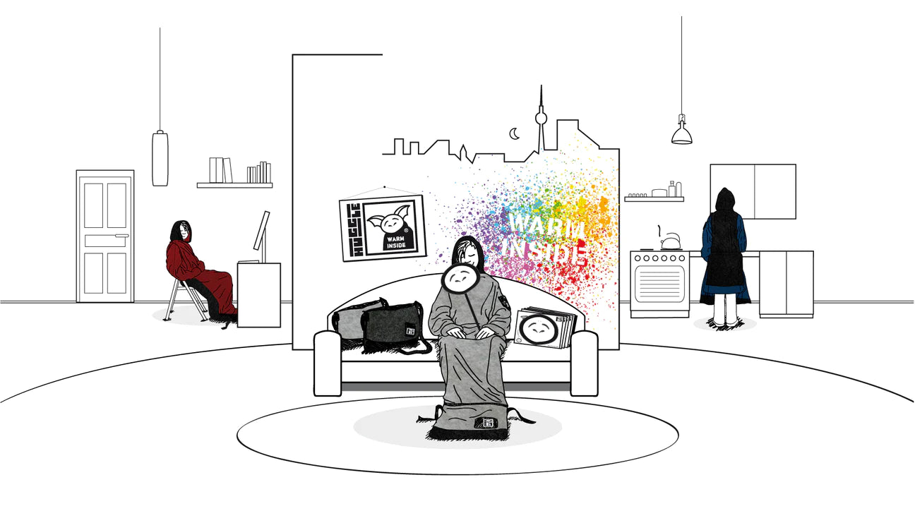 Ob auf der Couch, im Home-Office am Schreibtisch, auf dem Balkon oder unterwegs in die Küche - immer gemütlich gewärmt im Huggle "Homie"!